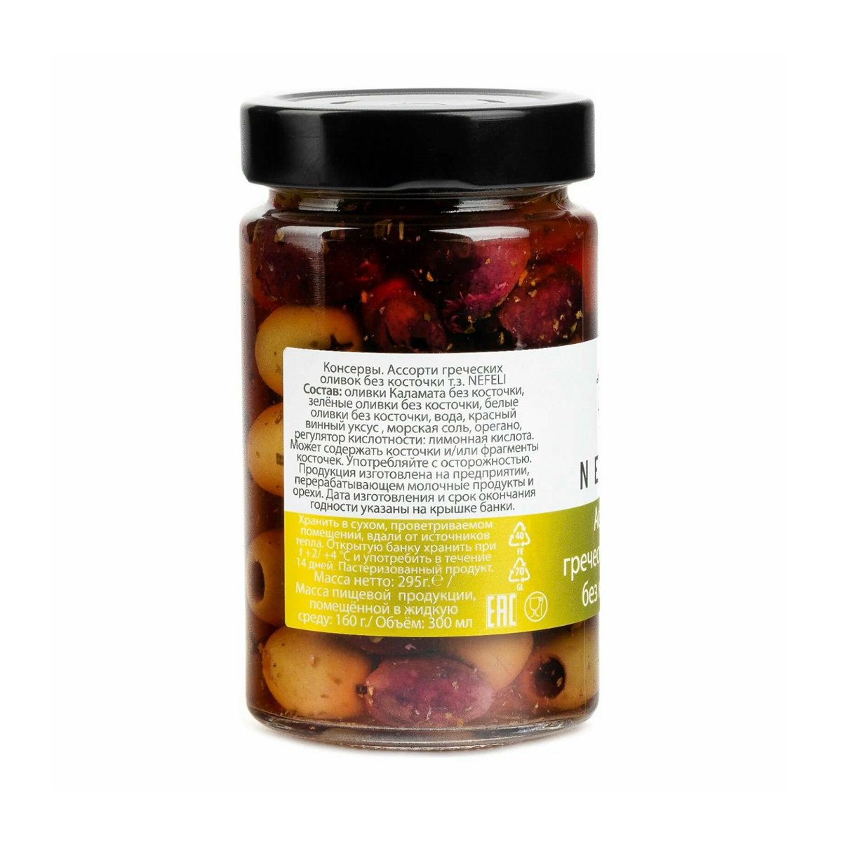 Ассорти греческих оливок без косточки Nefeli, 300 г