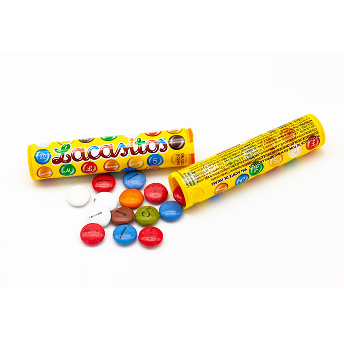 Ваши обычные тюбики Lacasitos! Вкусные шоколадные драже, покрытые тонким слоем сахара семи разных цветов.