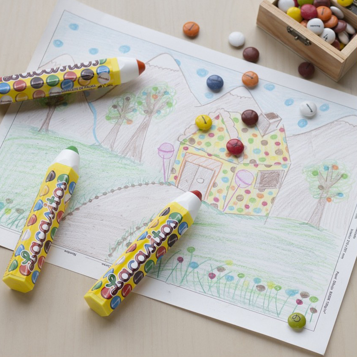 Забавные тюбики Lacasitos в форме карандашей, которыми можно рисовать.