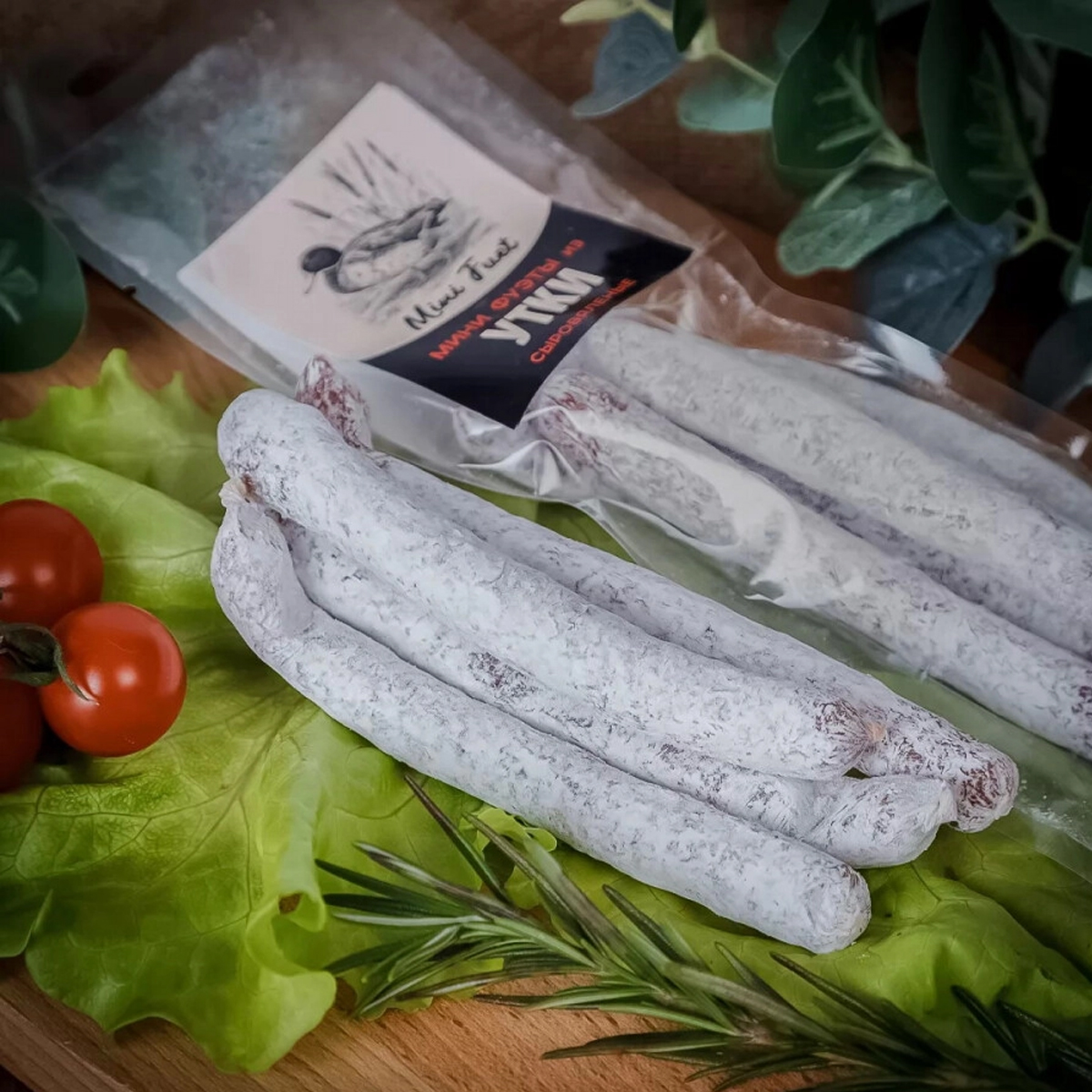 Мини фуэты сыровяленые Охота из натурального мяса утки, с добавлением хребтового шпига и ароматных специй.