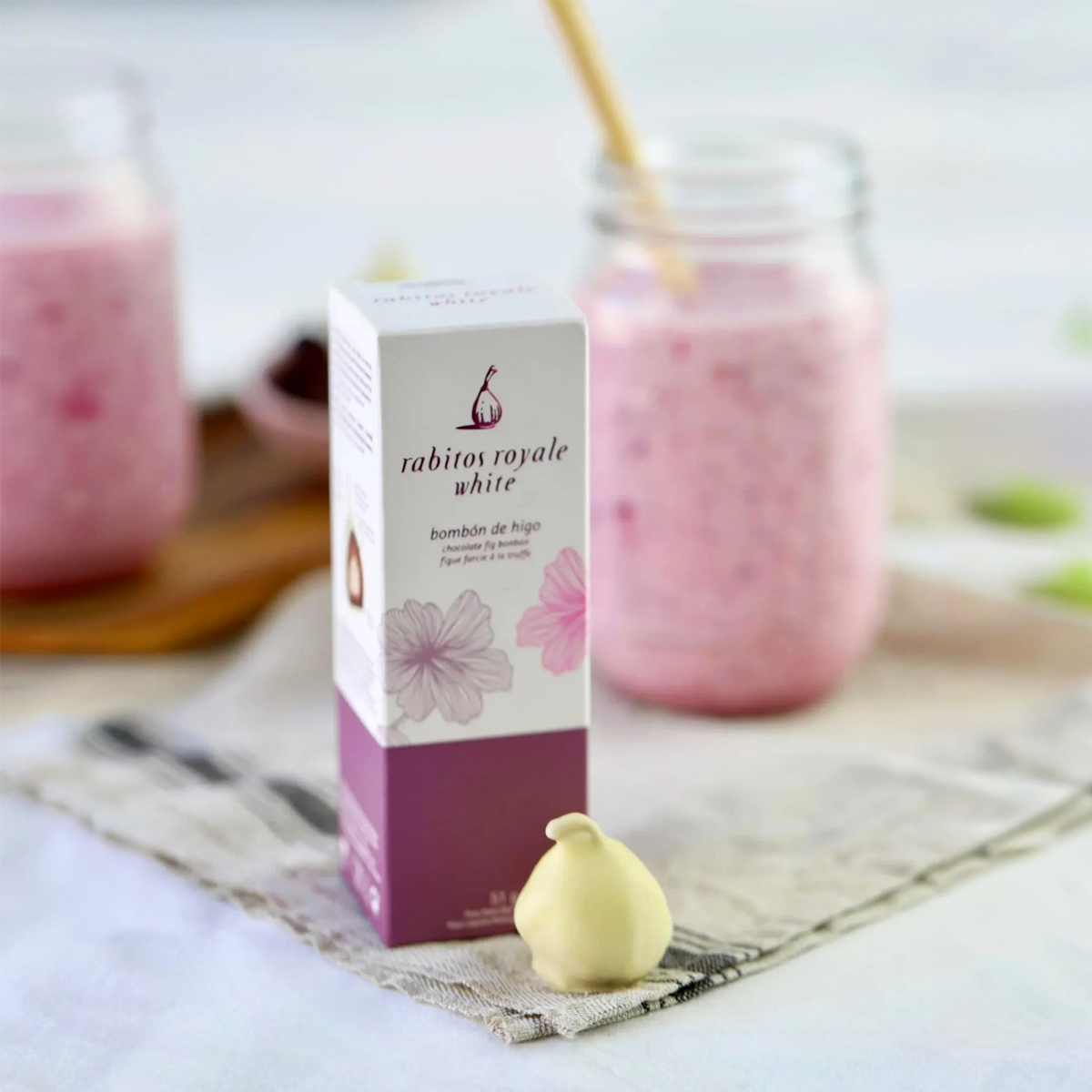 Инжир в белом шоколаде "Rabitos Royale" – это подлинный шедевр испанского кондитерского искусства! Выполненные с использованием отборного инжира Калабасита, конфеты "Rabitos Royale" наполнены великолепным кремом из трюфельного крема с сушёной клубникой. Тонкий слой белого шоколада в сочетании с трюфельным кремом великолепно акцентирует нежный вкус сладкого инжира.