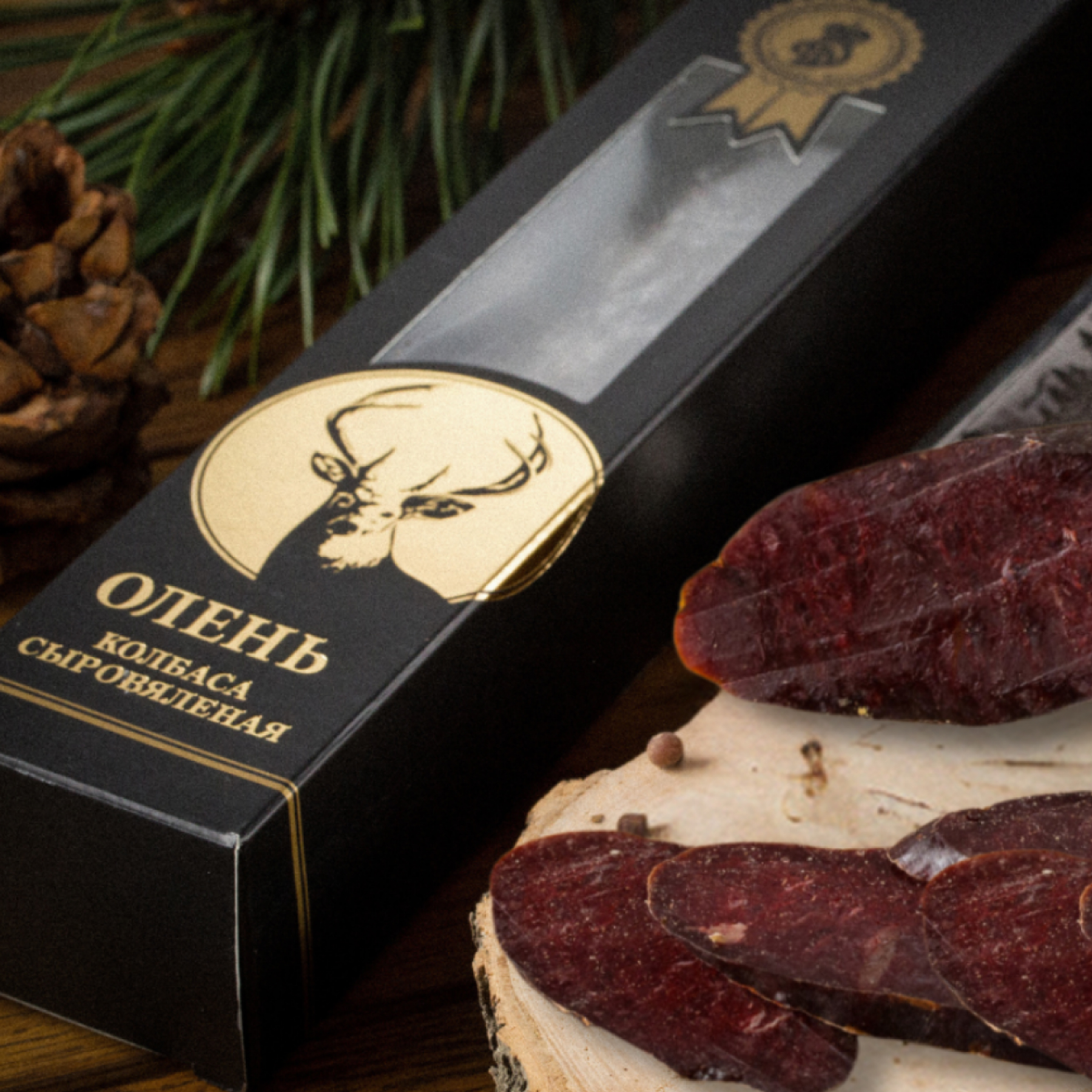 Колбаса Олень сыровяленая, в подарочной упаковке