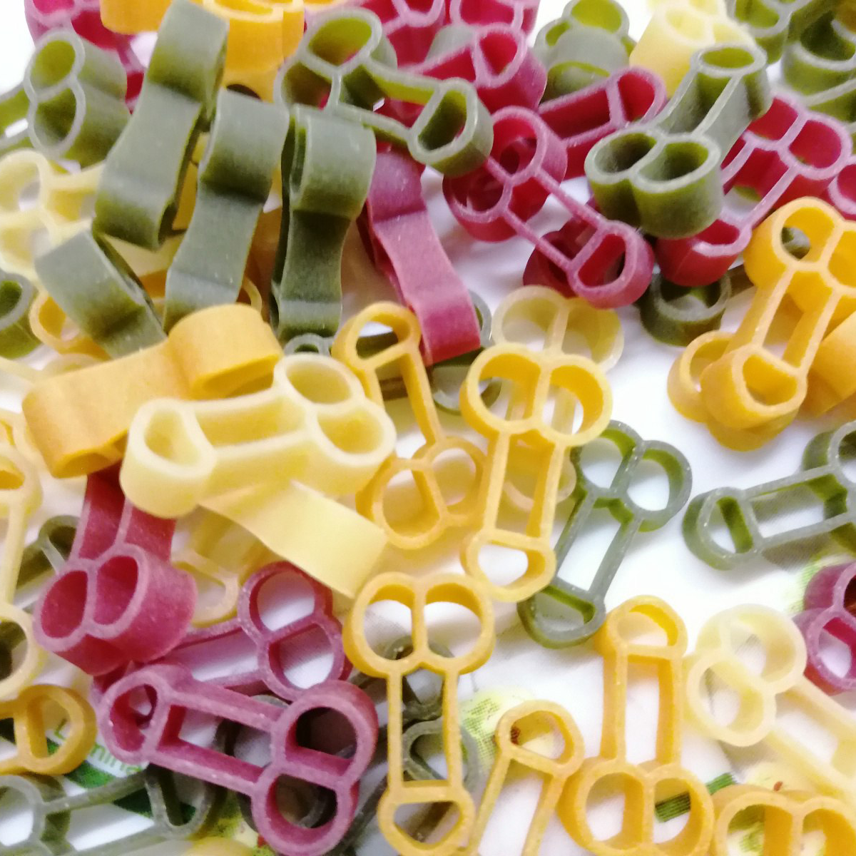• Мука из твердых сортов пшеницы, вода, обезвоженный шпинат 2,5%, обезвоженная красная свекла 1,5%, обезвоженная куркума 1%, обезвоженный томат 0,5%. Содержит глютен.