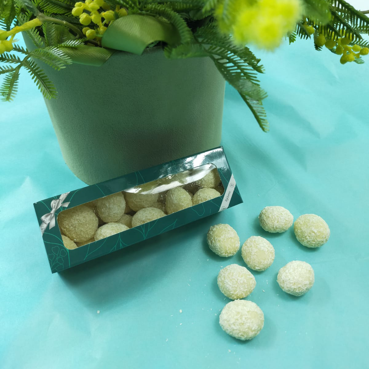 Миндаль Маркона в белом шоколаде в обсыпке из кокоса.
