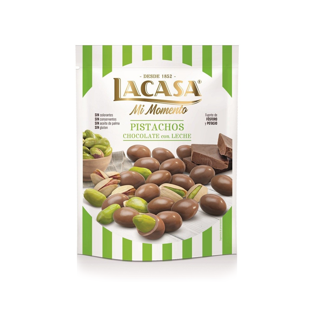 Вкусные жареные фисташки в тающем молочном шоколаде Lacasa .
