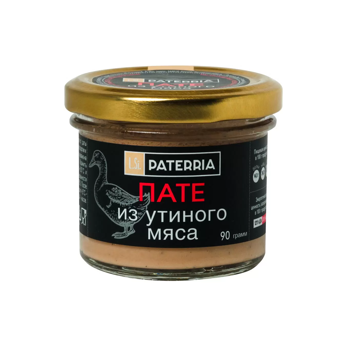 • Мясо утки (44%), печень утиная (18%), масло сливочное м.д.ж. 82,5% (сливки пастеризованные), яйцо куриное, морковь, лук, соль пищевая, чеснок, перец черный, перец душистый, перец чили, антиокислитель: кислота аскорбиновая. Массовая доля мясного сырья (по закладке) - не менее 61%.