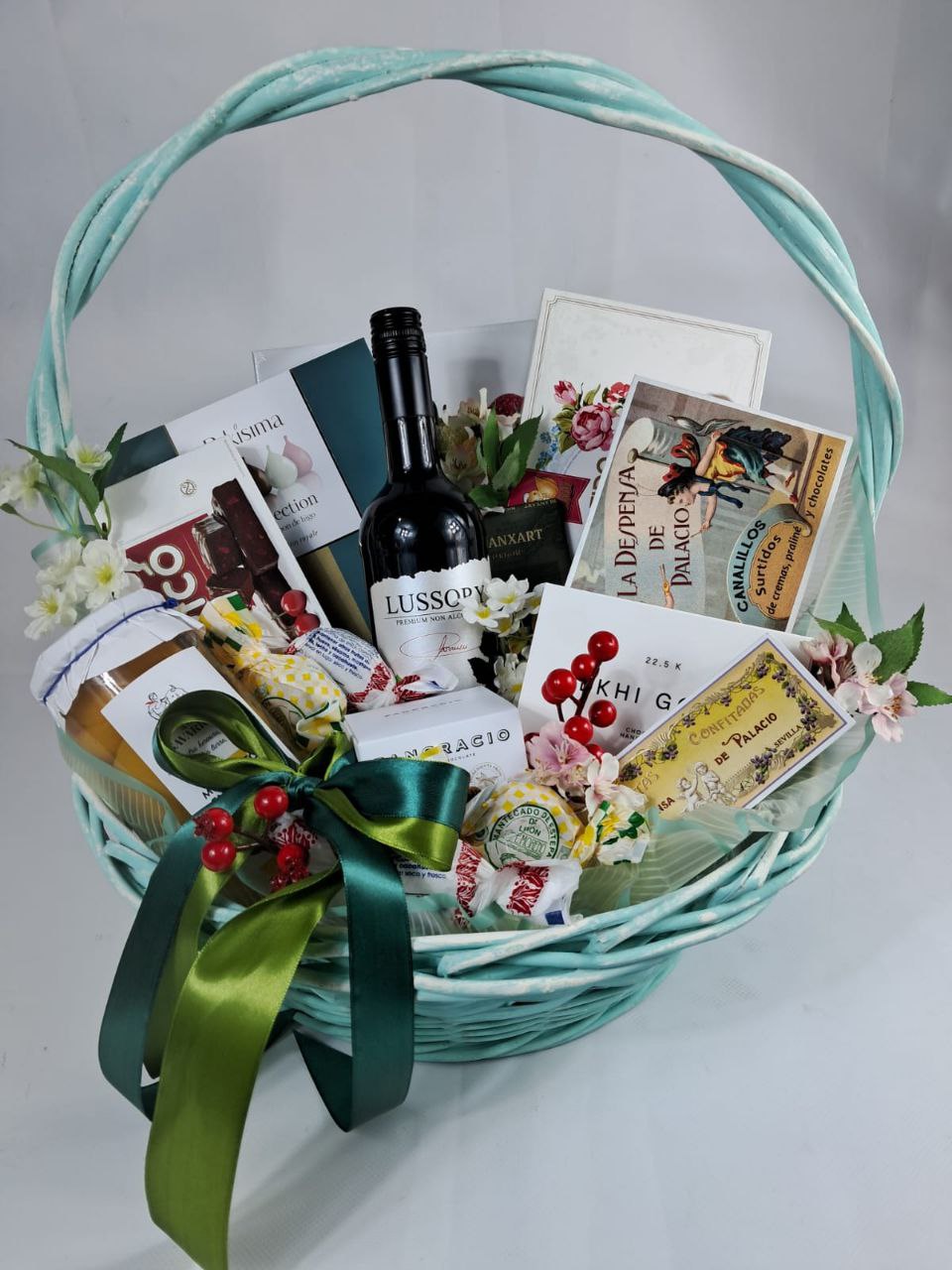 Плетеная корзина Италия средняя бирюзовая 43 см