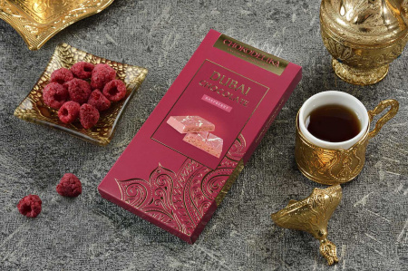 Шоколад белый с начинкой Dubai Raspberry с начинкой малина весом 180 г - это изысканное лакомство с малиновой начинкой. Шоколад относится к категории "дубайского" и производится в России.