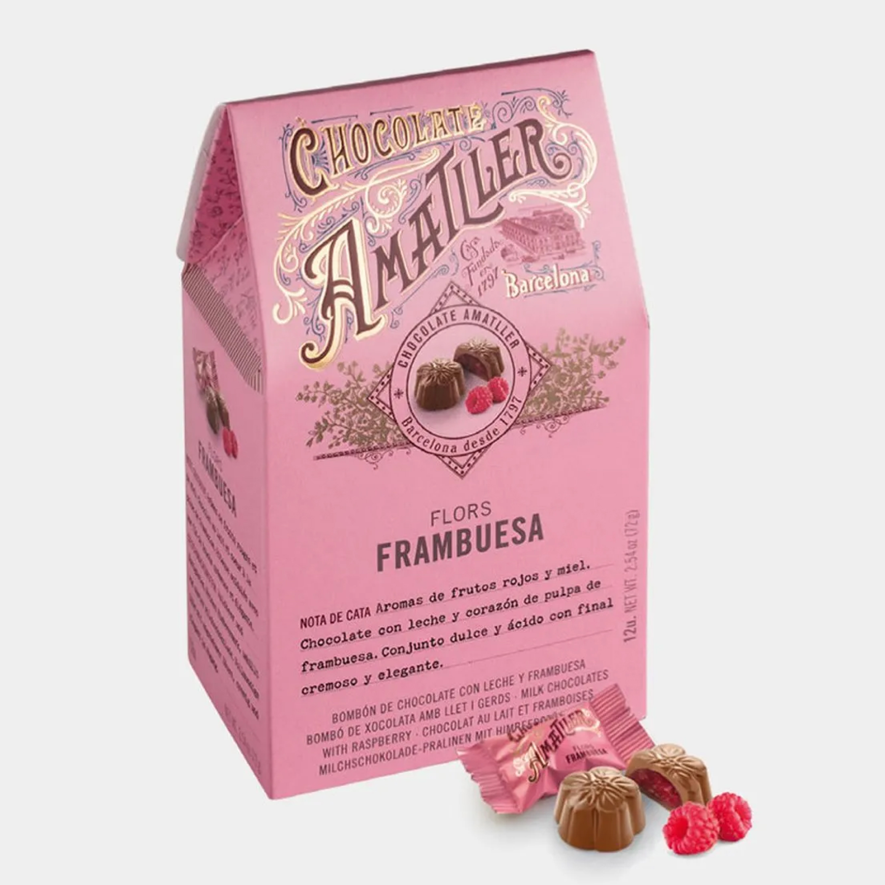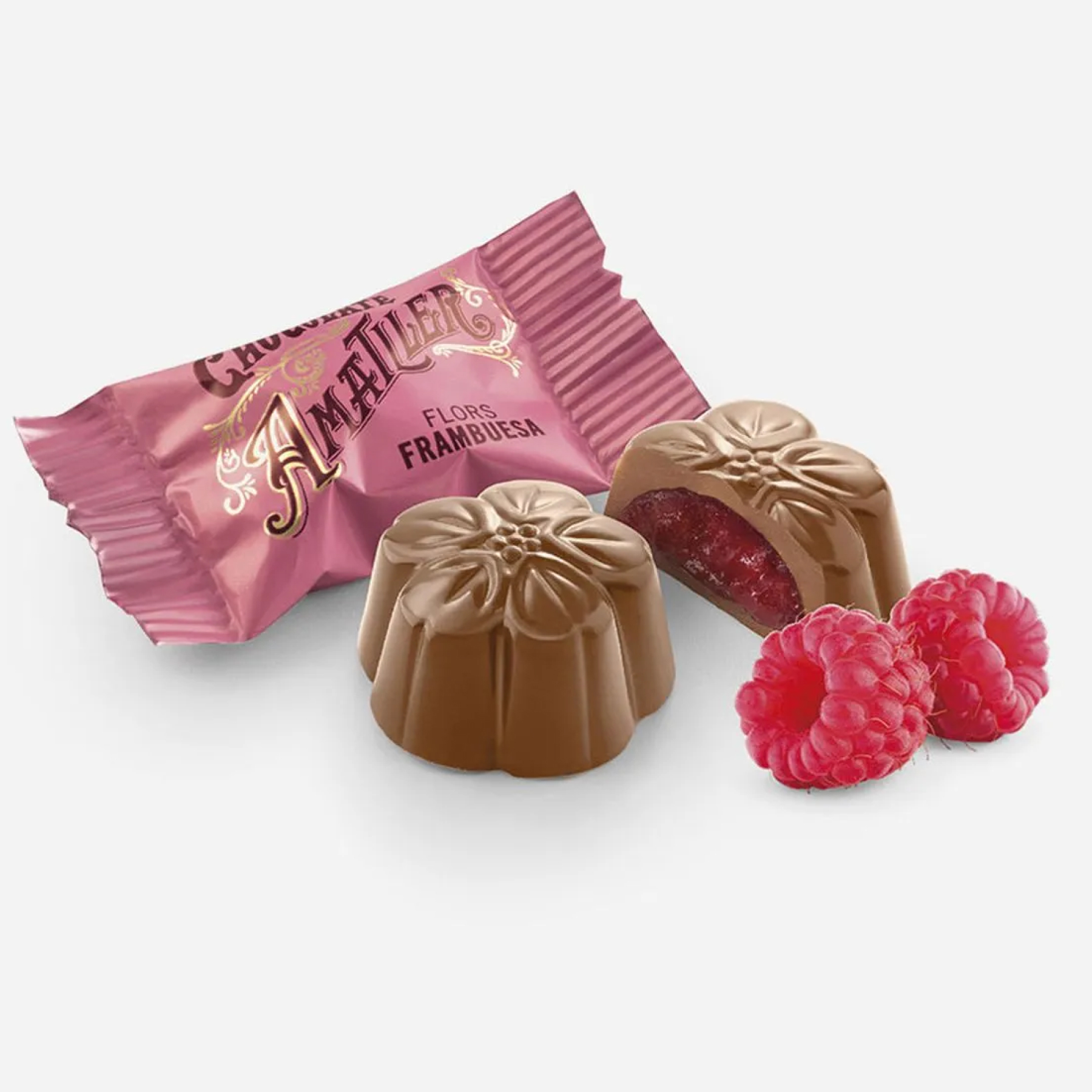 Шоколадные конфеты, покрытые шоколадом с содержанием какао 70%, с легкой кремовой начинкой на основе натурального малинового сока.
