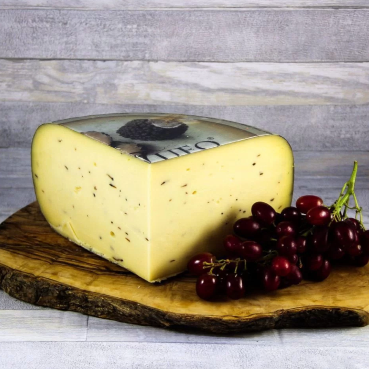 Восхитительный сыр из пастеризованного коровьего молока с добавлением натурального чёрного трюфеля.