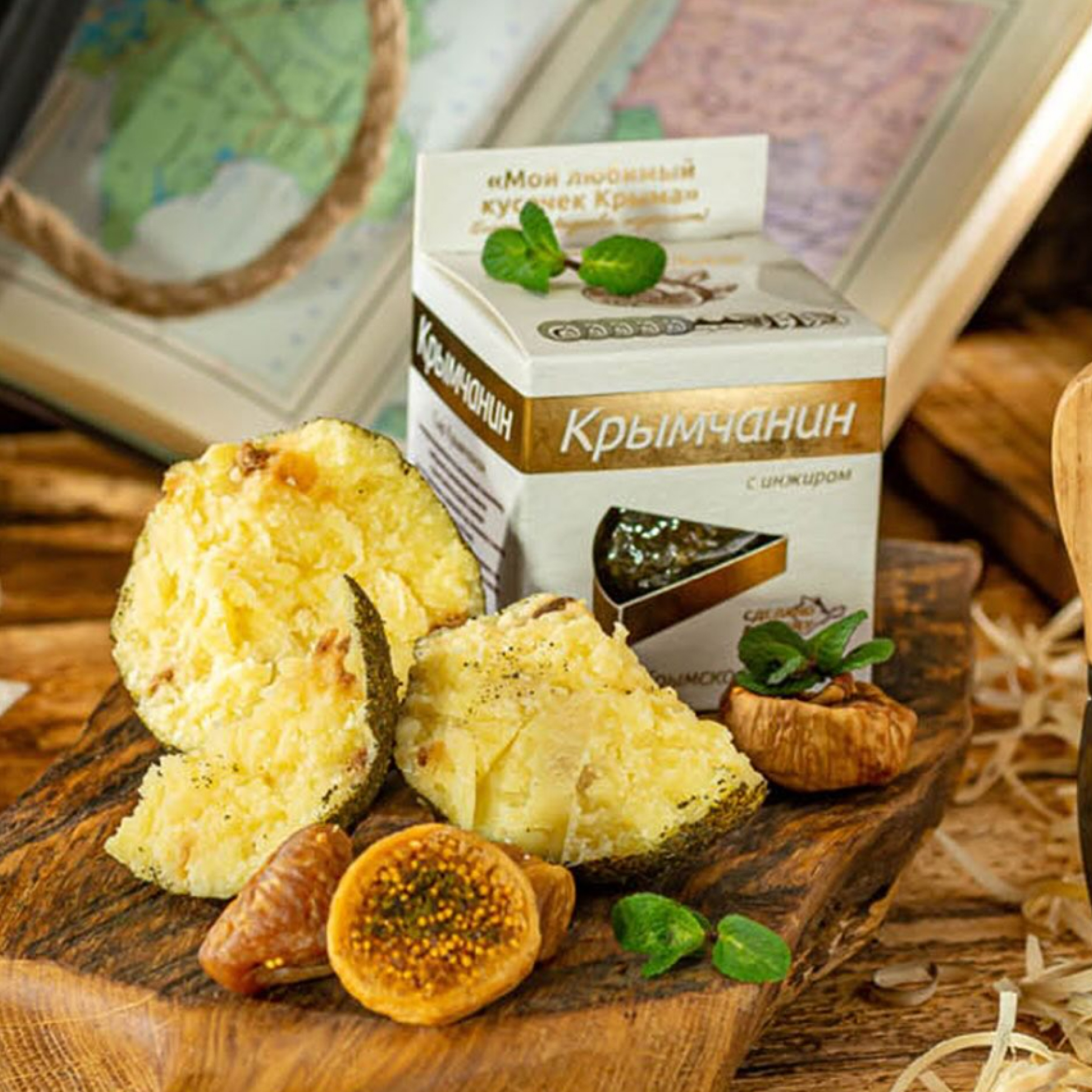 Сыр Крымчанин с инжиром - полутвердый сыр, который производят по уникальной технологии из коровьего молока. Продукт готовится и созревает в течение 90 дней. Затем умелый мастер перетирает крафтовый сыр смесью из термически обработанного инжира и мяты, формируя шар. На заключительном этапе Крымчанин с инжиром упаковывается в фирменную коробочку.