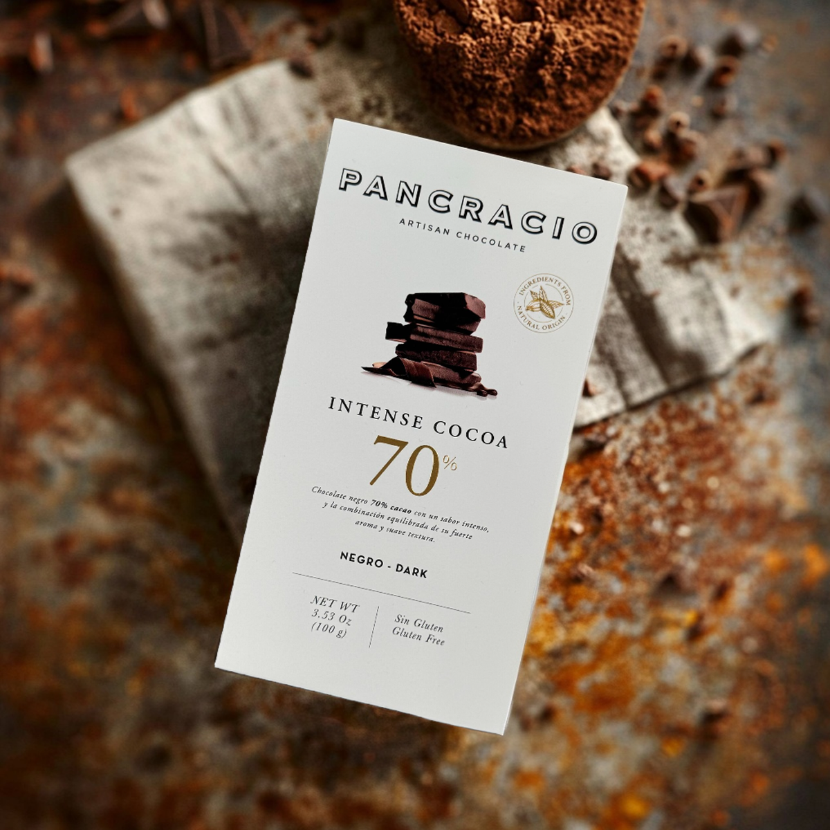 Темный шоколад 70% какао с интенсивным вкусом и сбалансированным сочетанием сильного аромата и гладкой текстуры.