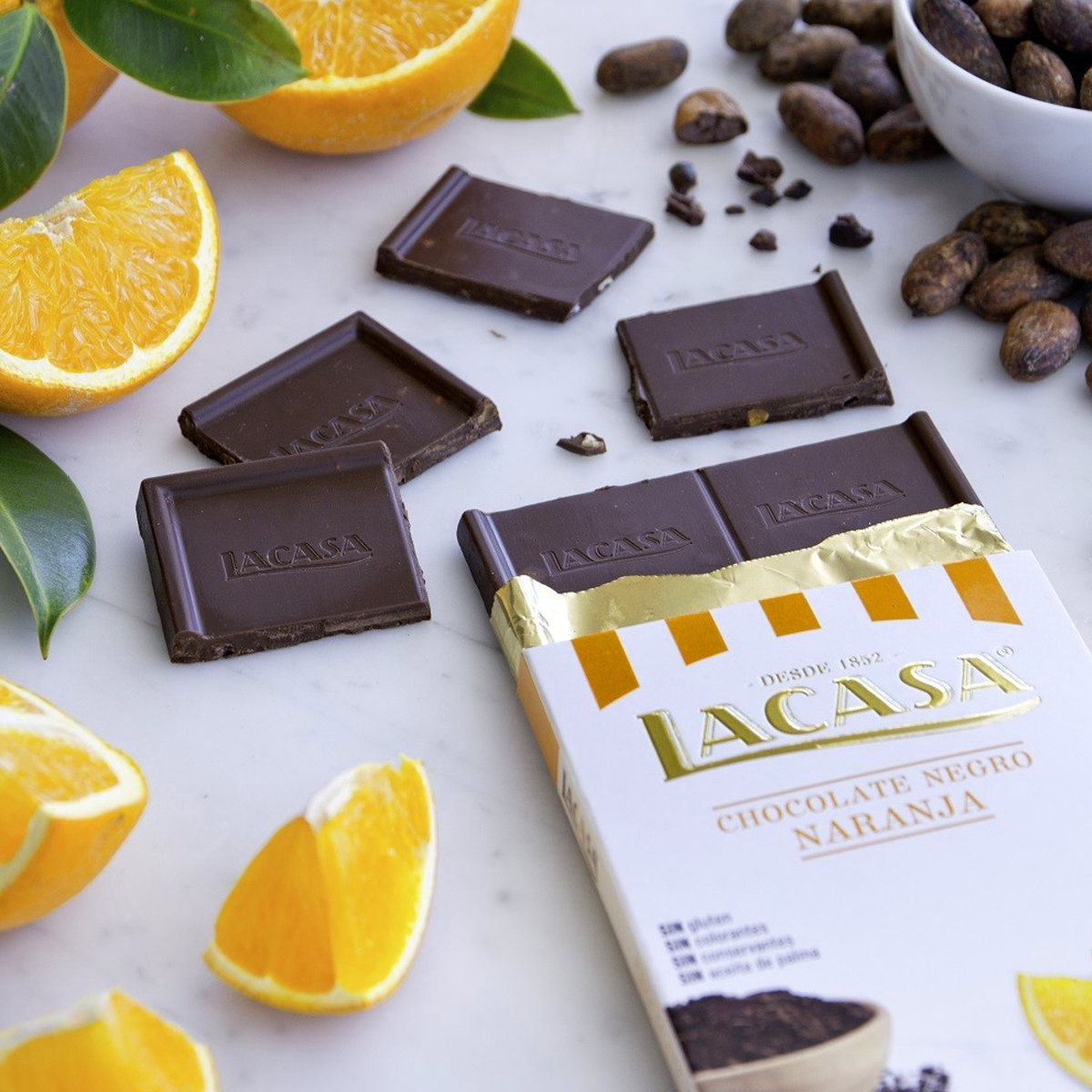 Темный шоколад с засахаренной апельсиновой цедрой 100г LACASA TABL.NEGRO NARANJA 100G