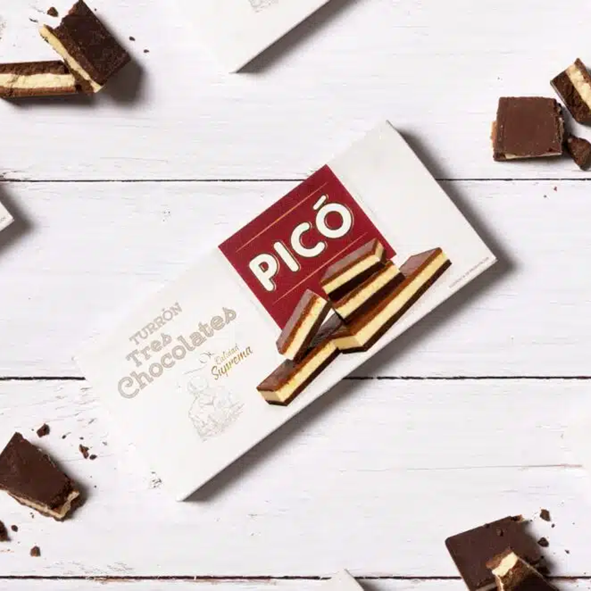 Трюфельный шоколадный десерт «Три шоколада» от Turrones Picó - настоящее наслаждение для любителей шоколада. Эта изысканная нуга сочетает в себе интенсивный вкус темного шоколада, мягкость молочного шоколада и сливочную сладость белого шоколада, создавая непреодолимые впечатления на любой вкус.