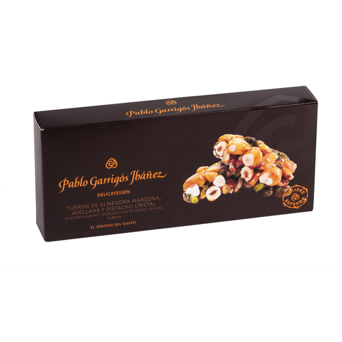 Твердый туррон с миндалём Маркона, фундуком и фисташками Turron de Almendra Marcona, Avellana y Pistacho cristal