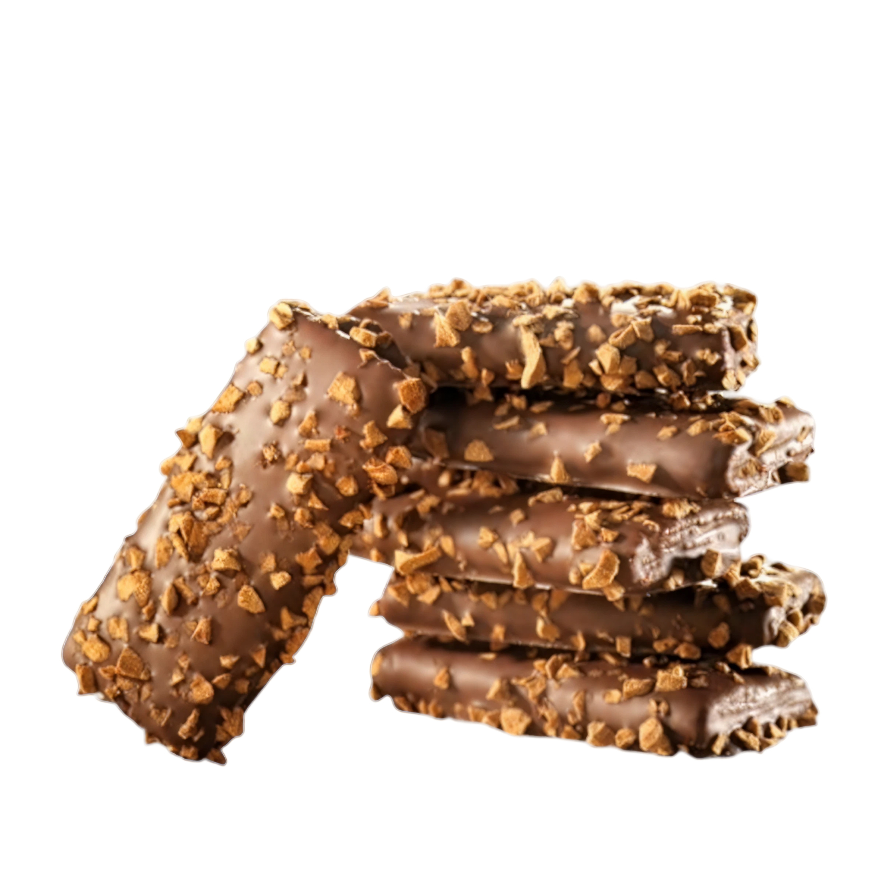 Мы добавили к нашим вафельным десертам в молочном шоколаде с кофейным вкусом посыпку из кофейной крошки. Искушение, которому трудно противостоять.