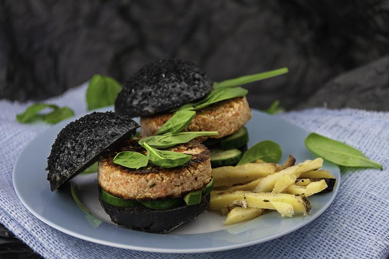 - 4 черные булочки для гамбугеров с черным кунжутом или семенами льна
